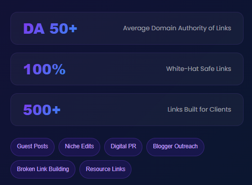 Our link building strategies focus on earning high-quality, niche-relevant backlinks from authoritative websites. Every link we build is designed to boost your domain authority and improve your search rankings sustainably.