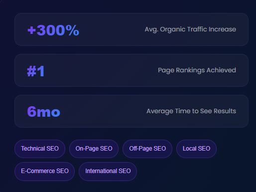 We optimize every aspect of your website — technical, on-page, and off-page — to push you to Page #1 and keep you there.